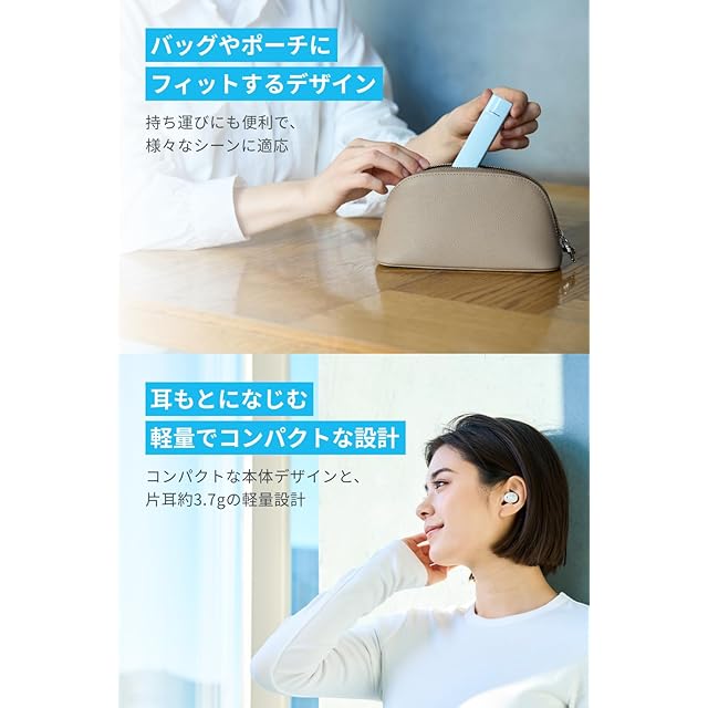 軽量コンパクト設計:片耳約3.7gの軽量設計とリップスティック型のコンパクトなケースを採用。持ち運びにも最適です。