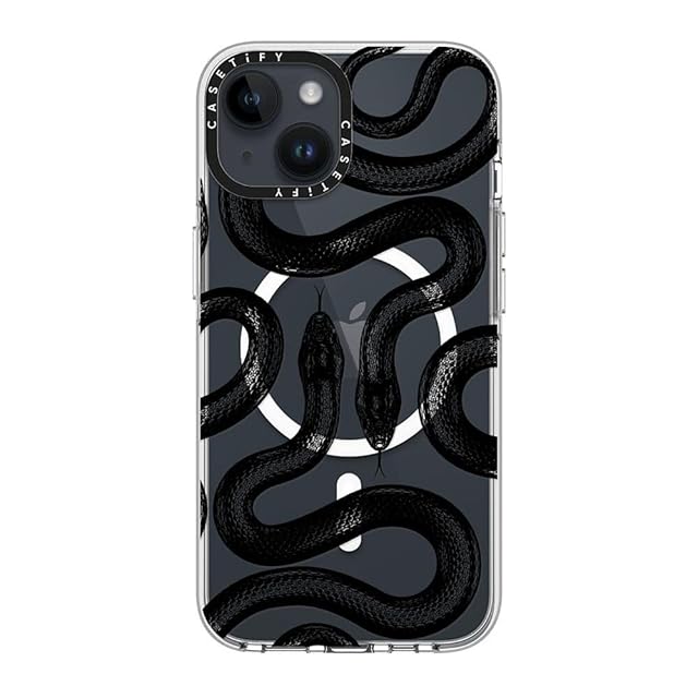 商品名:CASETiFY クリア iPhone 14 ケース [黄ばみにくい素材/2mからの落下試験をクリア/MagSafe に対応] - Black Kingsnake