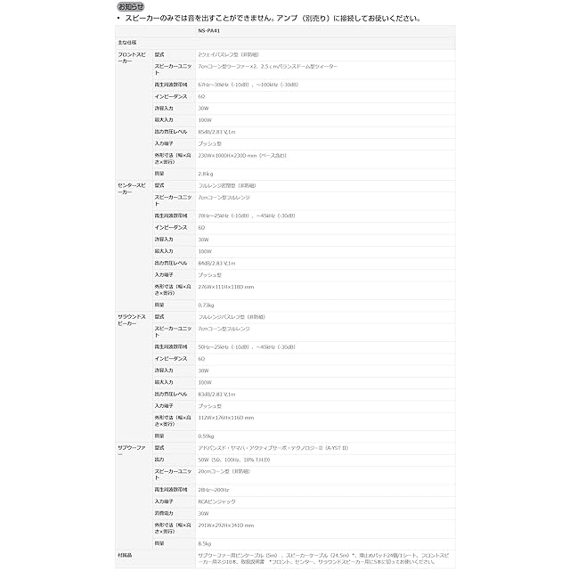 商品名:ヤマハ スピーカーパッケージ NS-PA41(B) 5.1ch トールボーイスタイル ブラック NS-PA41(B)