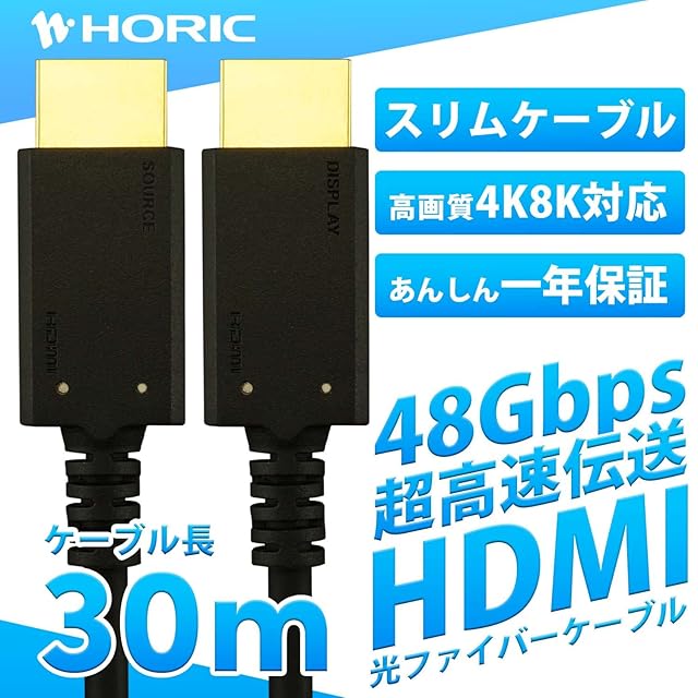 商品名:ホーリック 光ファイバー HDMIケーブル 30m 48Gbps 4K/120p 8K/60p HDR ブラック HDM300-629BK