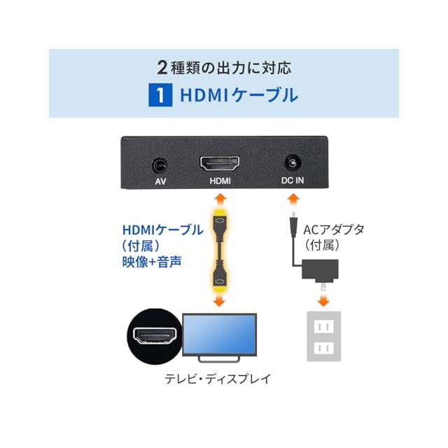 HDMI、RCAコンポジットの端子から出力できます。※同時出力はできません。