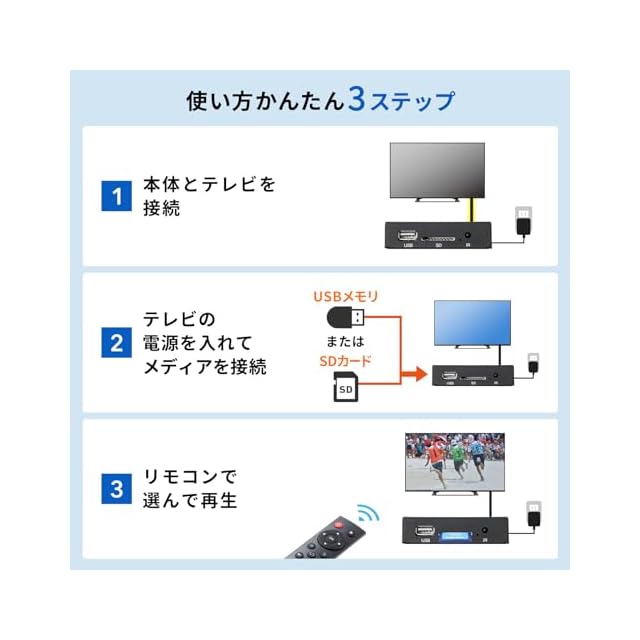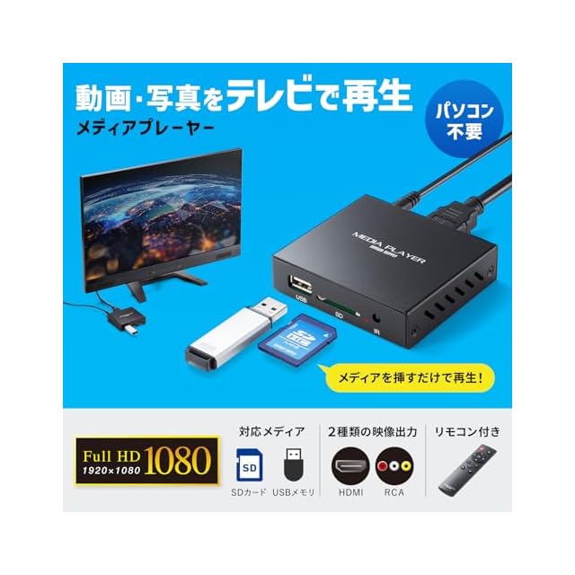 商品名:サンワサプライ メディアプレーヤー SDカード/USBメモリ対応 HDMI/RCA出力 Full HD リモコン付き MED-PL2K102