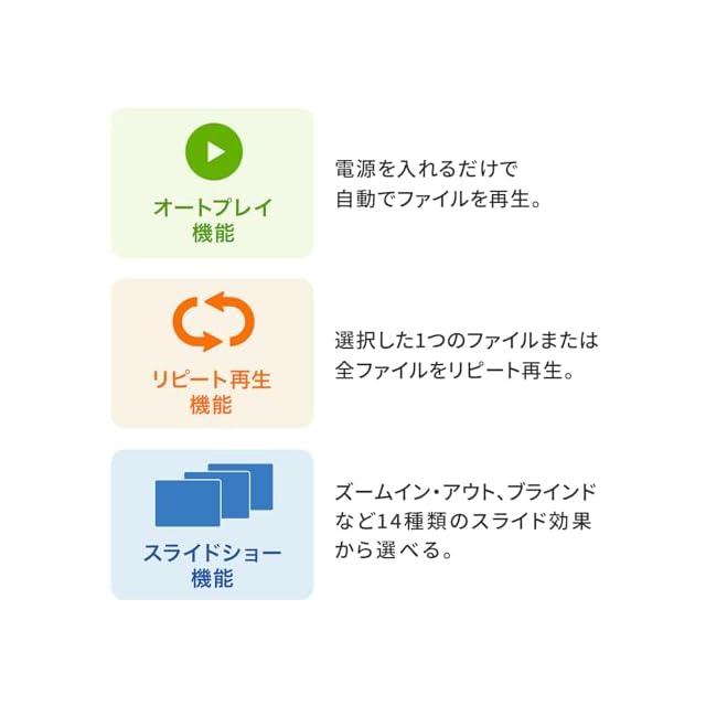 動画、音楽、画像データをテレビやプロジェクターで再生できるメディアプレーヤーです。