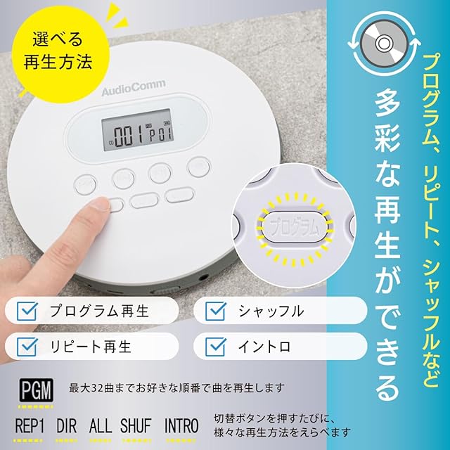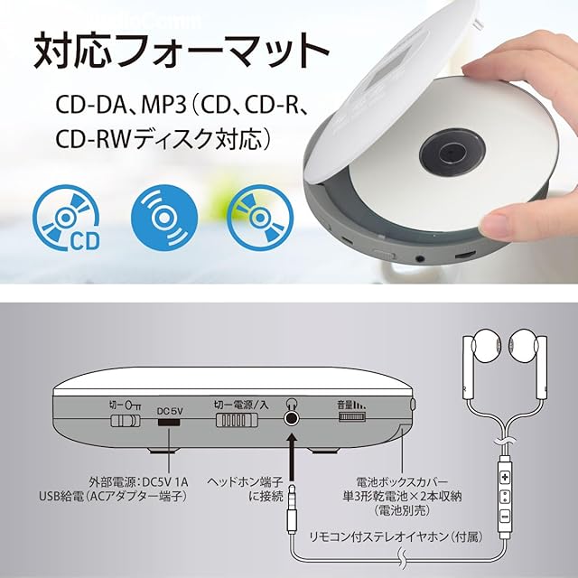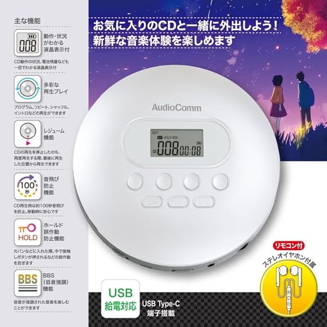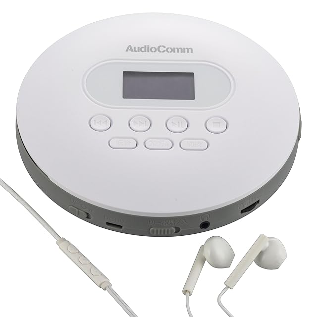 商品名:オーム(OHM) AudioComm ポータブルCDプレーヤー リモコン付きステレオイヤホン 乾電池式 USB給電対応 ホワイト 英語 リスニング 語学学習 英検 TOEIC対策 CDP-858Z 03-5089 オーム電機