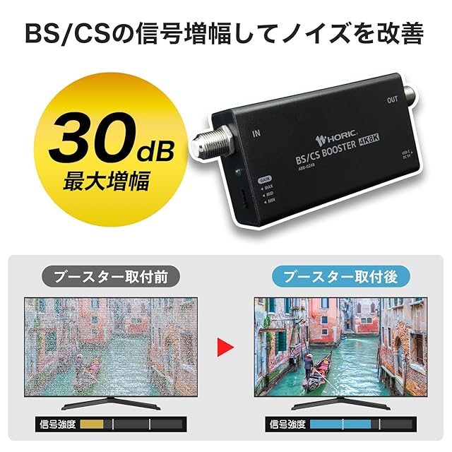 商品名:ホーリック アンテナブースター 室内・BS/CS専用 ABS ABB-024B