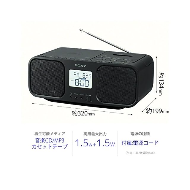 商品名:ソニー CDラジオカセットレコーダー CFD-S401 : FM/AM/ワイドFM対応 大型液晶/カラオケ機能搭載 電池駆動可能 ブラック CFD-S401 B
