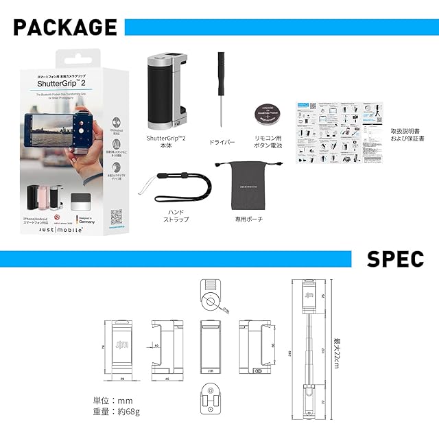 商品名:ジャストモバイル(Just Mobile) ロア・インターナショナル スマホ用多機能カメラグリップ ShutterGrip 2 シルバー