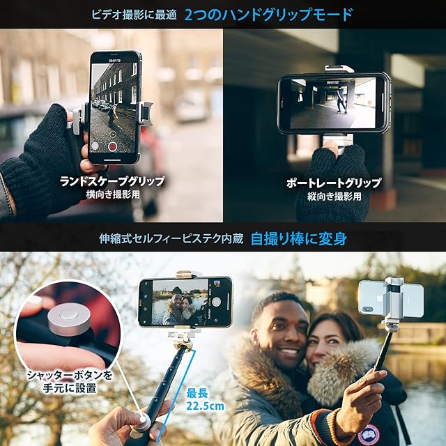 【スマートフォンで本格的な撮影を可能にするカメラグリップ】一眼レフカメラのグリップ感とシャッターボタンの位置をスマートフォンで再現します。