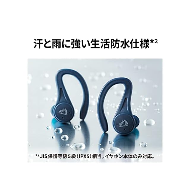 屋外やスポーツ時の使用も可能なIPX5相当の汗や雨に強い防水仕様※2 ※2:JIS保護等級5級(IPX5)相当。イヤホン本体のみ対応。