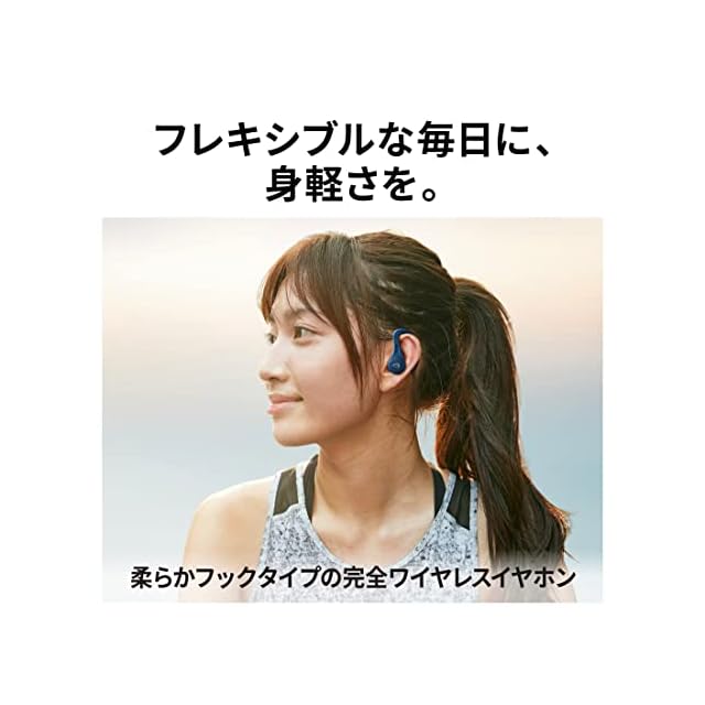 柔軟性のあるイヤーフックにより、ソフトな装着感と耳から外れにくい安定性を実現。また、イヤホン本体質量約6.9g(片耳)を実現し、フックタイプながら耳に収まりやすいコンパクトな形状を採用。
