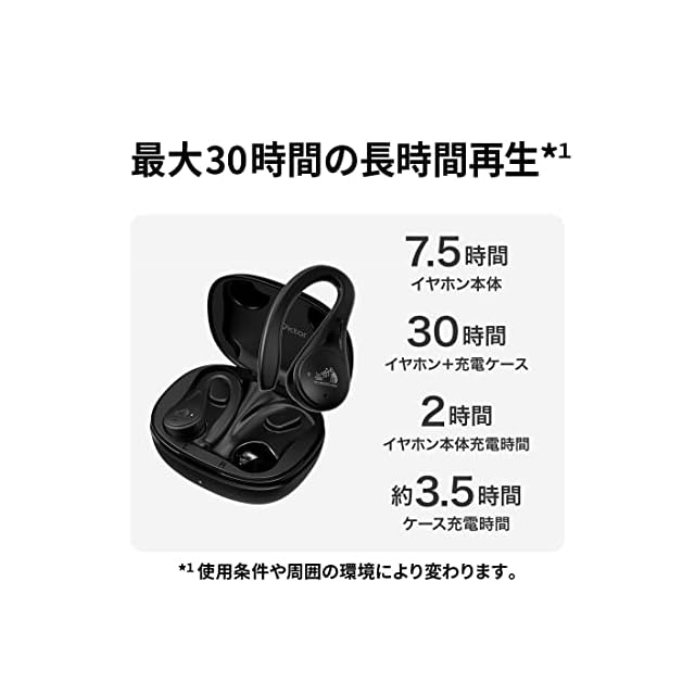 本体のみで最大7.5時間※1の連続再生と充電ケースでのフル充電(最大7.5時間※1×3回)により合計最大30時間※1の長時間再生が可能。※1:使用条件により変わります。