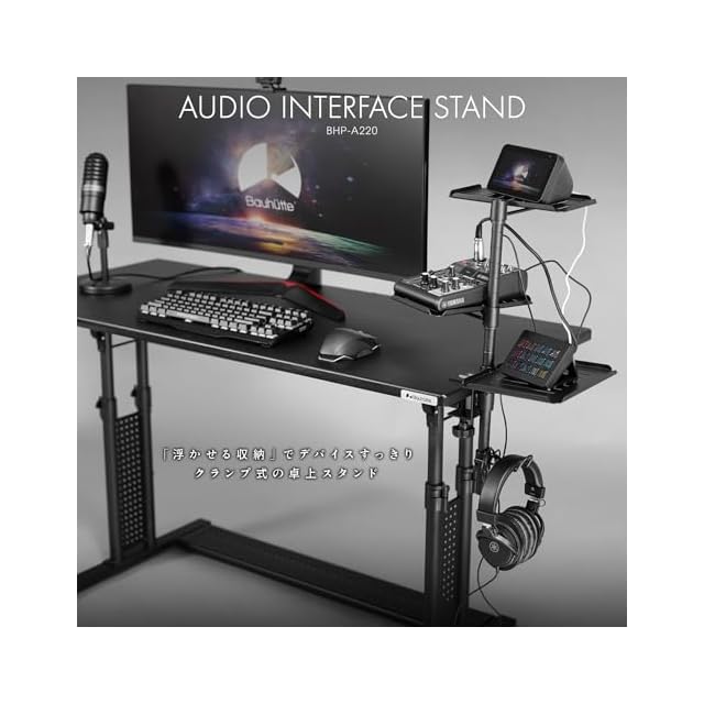 商品名:Bauhutte (バウヒュッテ) オーディオインターフェース スタンド BHP-A220-BK デスク下 ヘッドセット オーディオミキサー 収納 後付け