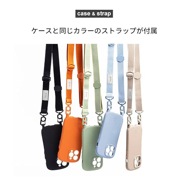 Keep on moving! もっと軽やかに、アクティブに遊ぼう!<br><br>iFaceからショルダーストラップ付きケース「Hang and ハングアンド」が新登場!<br>ハンズフリーでスマートに持ち運べるから、アクティブなシーンでもとっても便利。<br>フリーになった両手でモバイルライフを楽しもう!<br><br>バリエーションは、ベーシックで使いやすいブラック、ライトカーキ、ベージュ、ファッションのアクセントになるオレンジ、ペールブルーの5カラー。<br>iPhone12/12Pro以外の機種はカメラレンズの周囲を覆う仕様になっているため、より安心してお使いいただけます。<br>※iPhone12/12Pro用は2機種兼用のため上記の仕様とは異なります。<br><br><br>・ケースとストラップのセット<br>・シリコンとポリカーボネートのハイブリッド素材で着脱を繰り返しても型崩れしにくい<br>・ストラップの長さは自由に調節が可能<br>・首や肩に食い込みにくい平紐のストラップ<br>・ケースは指紋が目立ちにくく、サラサラと滑らかなさわり心地<br>・オリジナルデザインのカラビナでストラップの付け外しが簡単<br>・ライトニングコネクタに干渉しないため、スマホケースを付けたまま充電が可能<br>・両手が自由になるので、子育て中にもおすすめ<br><br><br>●本製品ご使用における人体・スマートフォン本体を含む持ち物・データなどの損傷、損失、紛失に対し、弊社は一切の責任を負いかねます。<br>●スマートフォン本体やケースに発熱などの異常がある場合は本製品を外してください。<br>●画面保護フィルムの形状により本製品と併用できない場合があります。<br>●背面カメラでの撮影時に写り込みが起こる場合があります。<br>●ご使用の充電器や環境によってワイヤレス充電がご利用いただけない場合があります。<br>●ストラップが電車、エレベータ、自動ドアなどに挟まれたり引っかかると大変危険です。十分ご注意ください。<br>●摩擦等により紐が劣化した場合は速やかに使用を中止してください。落下・破損等の原因となります。<br>●ご利用状況・環境、溶剤の使用などにより変色や変質が起きることがあります。<br>●本製品装着やOSアップデートにより、スマートフォンの一部機能が使えなくなる可能性があります。<br>●本製品およびパッケージは改良のため予告なく仕様を変更する場合があります。<br>●記載されている製品名・会社名などは各社の商標または登録商標です。<br>●デニム生地など濃い色の素材との摩擦により、ケースへ色移りする場合があります。<br><br><br>商品仕様<br>14Pro用:約縦16.5×横8.1×厚1.4cm、重量約41g<br>ショルダーストラップ長さ:全長(カラビナ含む)約84~146cm(調整可)<br>平紐幅:約2.2cm<br>ケース主素材:シリコン、ポリカーボネート、ポリウレタン<br>ショルダーストラップ主素材:ポリエステル、ポリカーボネート、亜鉛合金<br>ワイヤレス充電:可<br>:有(ケースのみ対象。ショルダーストラップは対象外。)<br>ショルダーストラップ耐荷重:約10kg<br>
