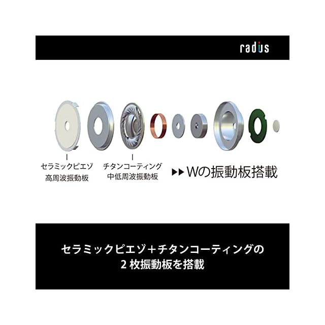 商品名:ラディウス radius HP-TWF00 ハイレゾ対応イヤホン ドブルベ アンテリュール : Ne ハイレゾ MMCX リケーブル対応 2枚の振動板 DDM方式ドライバー 有線 カナル型 HP-TWF00K (ノワール)