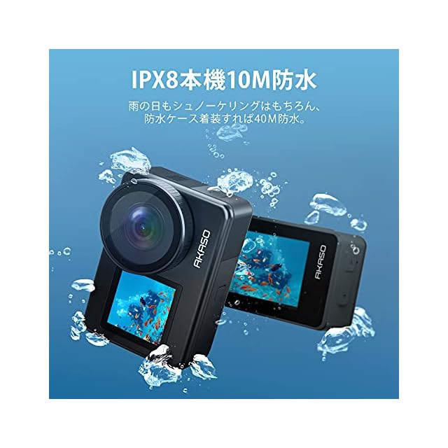 【設計改良の本機防水アクションカメラBrave 7】AKASO Brave 7アクションカメラは、IPX8防水性能があり、雨、雪、水しぶきからカメラを保護可能、どんな天候でも使用でき美しさを保存されます。本機防水10Mで防水ケースを装着しなくても楽に撮影することができます。メモ:実際の防水深さは使用方式によって差があります。また、防水ケース(別売り)を装着すると、最大40M防水可能になります。