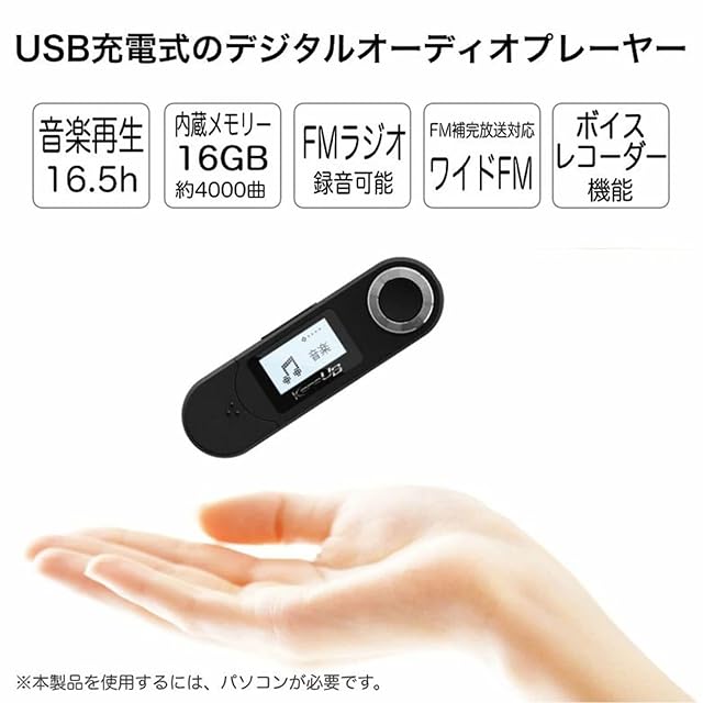 商品名:グリーンハウス MP3プレーヤー 16GB USB充電式 直接挿せる ボイスレコーダー ラジオ ワイドFM 録音可 音楽 ブラックGH-KANAUBS16-BK