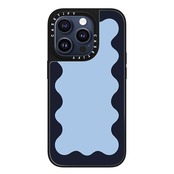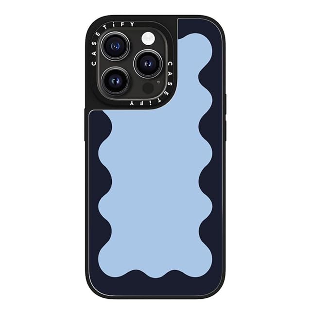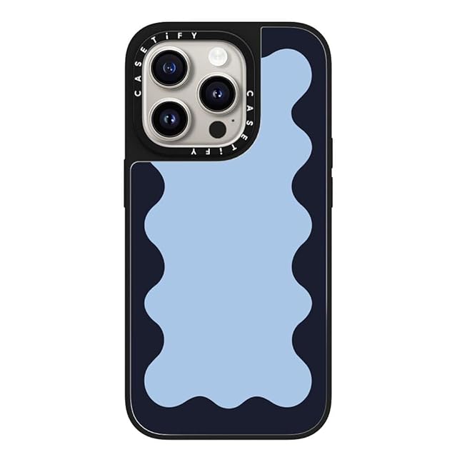CASETiFY Magsafe 対応ミラー iPhone 15 Pro ケース [反射性 / 1.5mからの落下試験をクリア / Magsafe に対応] - Blue Background Wavy Border - シルバー (ブラックバンパー) | LIS MART