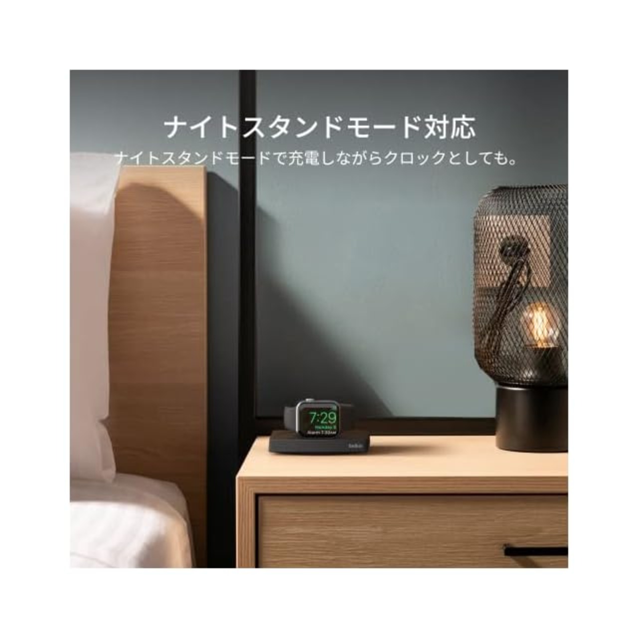 【ナイトスタンドモードに対応】Apple Watchを平らに寝かせたり、ナイトスタンドモードで目覚まし時計として使うことができます。充電モジュールは、どちらの向きでも使用できるように上げることができます。