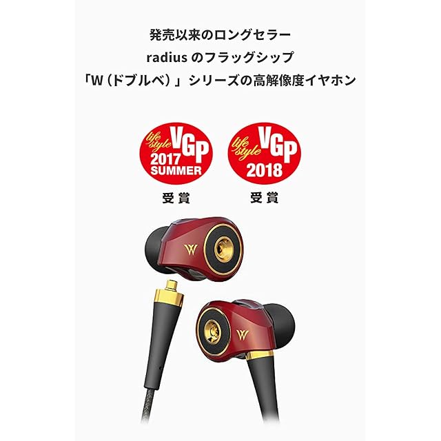 商品名:ラディウス radius HP-TWF00 ハイレゾ対応イヤホン ドブルベ アンテリュール : Ne ハイレゾ MMCX リケーブル対応 2枚の振動板 DDM方式ドライバー 有線 カナル型 HP-TWF00R (バーガンディ)