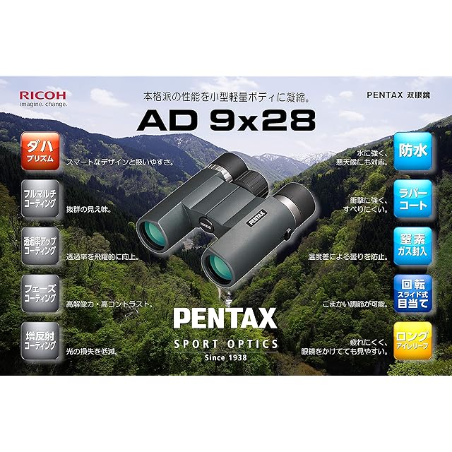 ペンタックス PENTAX 双眼鏡 AD 9×28 WP 防水 手ごろな大きさで8倍と10倍のいいとこどり 倍率9倍 フルマルチコーティング 高性能 ケース・ストラップ付 で片手で使える ライブ コンサート スポーツ観戦 メーカー1年 ペンタックス 62831 | LIS MART