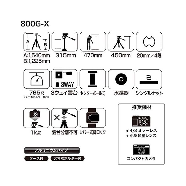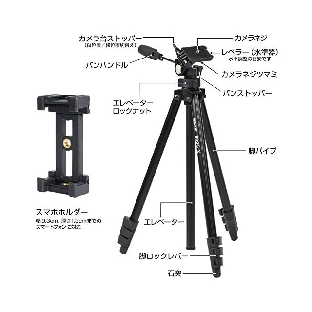 商品名:SLIK 三脚 800G-X 4段 レバーロック式 スマートフォンホルダー付属 軽量タイプ ブラック 217191