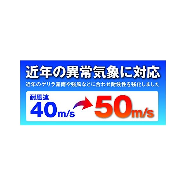 豪雨や強風などにも耐えられる耐風速50m/sの強度です。