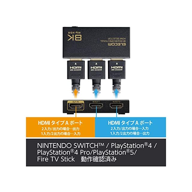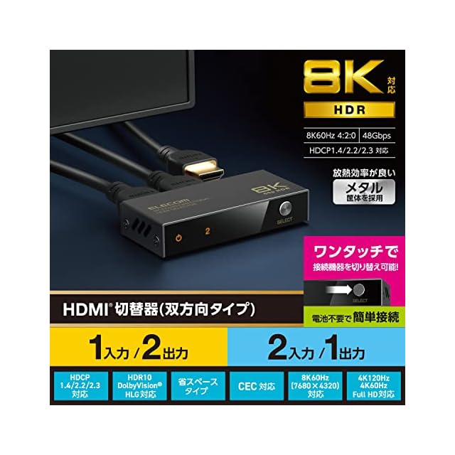 エレコム(ELECOM) HDMI切替器 8K60Hz/4K120Hz対応 双方向 【PS5/PS4/PS3/Switch/FireTVStick対応】 2入力1出力 自動/手動切替メタル筐体 ブラック DH-SW8KBD21BK | LIS MART