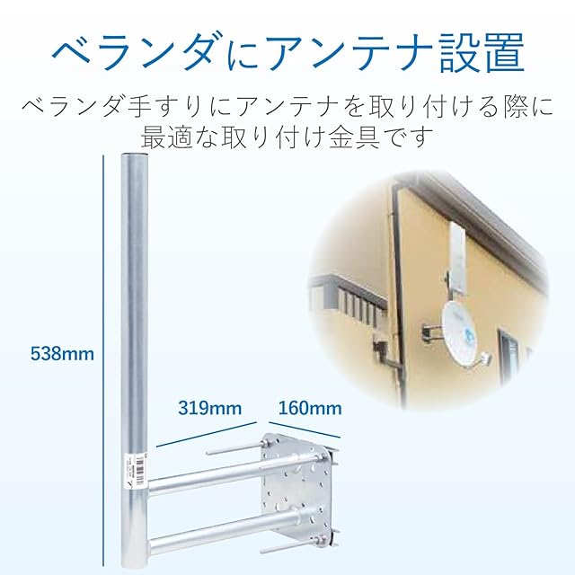 商品名:DXアンテナ ベランダ取付金具 UHF平面 BS・CSアンテナ用 長尺マスト MV30ZM