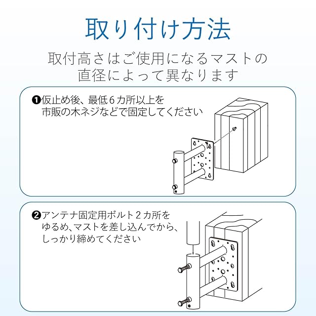 格子・壁面・鋼管柱にも付けられるアンテナ取付金具。
