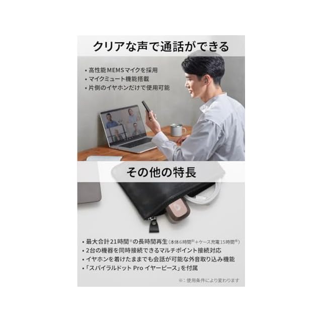 【優れた描写でありながら角のない“なめらかな”サウンド】日本古来から楽器の弦などにも用いられている天然素材のシルク(絹)に着目し、その成分をカーボンコーティングされたベース部に付加した、大口径11mmのシルクレイヤーカーボン振動板を開発。シルク(絹)の特性であるなめらかさにより、瑞々しい豊かな響きの音(優れた描写でありながら角のない“なめらかな”サウンド)を実現しました。また、磁気回路やボイスコイルなどに、有線ハイクラスイヤホン同等のパーツを採用して設計するとともに、音響用チャンバー構成部品にはステンレスを採用。余分な振動を徹底排除し、ディテールの正確な再現力、伸びのあるクリアな表現、および広く見通しの良い音場の再現による密度の高いサウンドを実現しています。