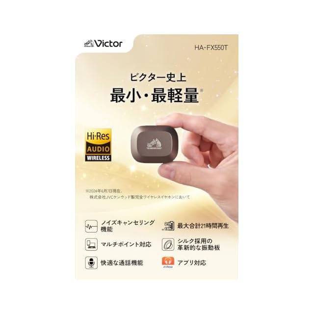 商品名:JVCケンウッド Victor HA-FX550T-N ワイヤレスイヤホン Bluetooth Ver.5.3 ノイズキャンセリング ハイレゾ LDAC対応 マイク付き 外音取り込み 防水 低遅延 アプリ対応 合計21時間再生 小型 軽量 ブロンズ