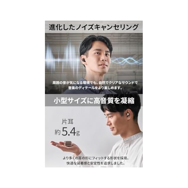 【進化したハイブリッドノイズキャンセリング】ノイズキャンセリング音を作り出す役割のドライバー性能と、独自設計のパラメーターの改良などに加え、新たに風切り音を低減するモードの追加により、進化したノイズキャンセリング性能を実現。また、音質担当技術者が音質とノイズキャンセリングの効果を高度に調和させることにより、自然で高いノイズキャンセリング効果を実現しています。