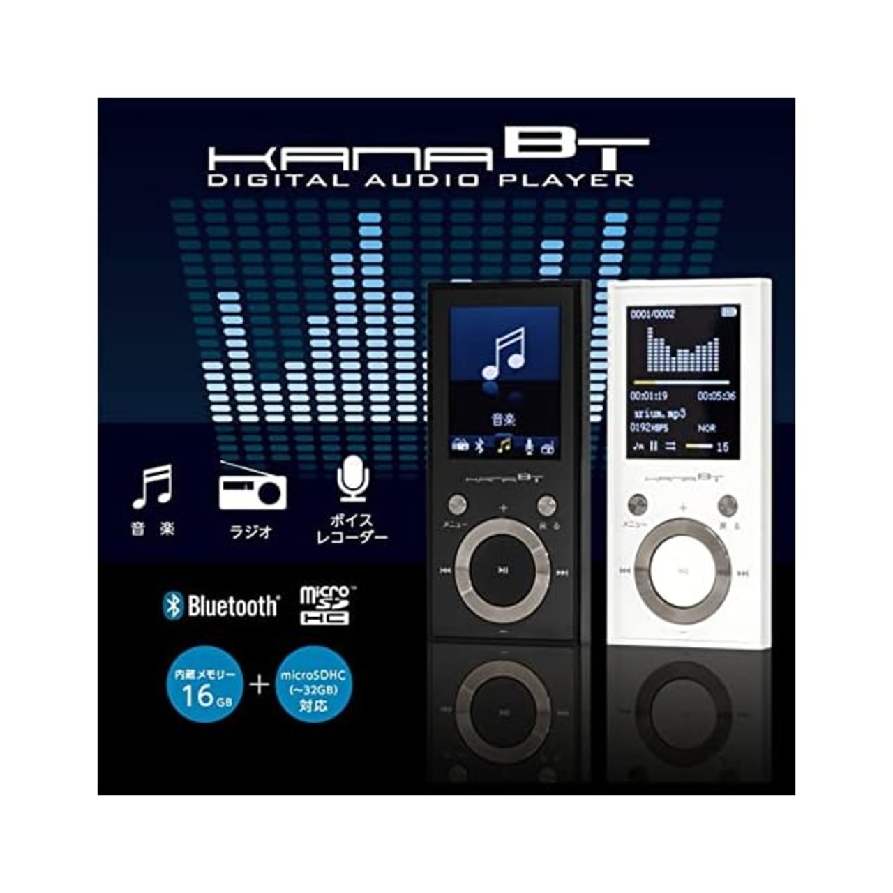 商品名:グリーンハウス MP3プレーヤー 16GB Bluetooth対応 FMラジオ ボイスレコーダー 録音 microSD対応 音楽 ブラック GH-KANABTS16-BK