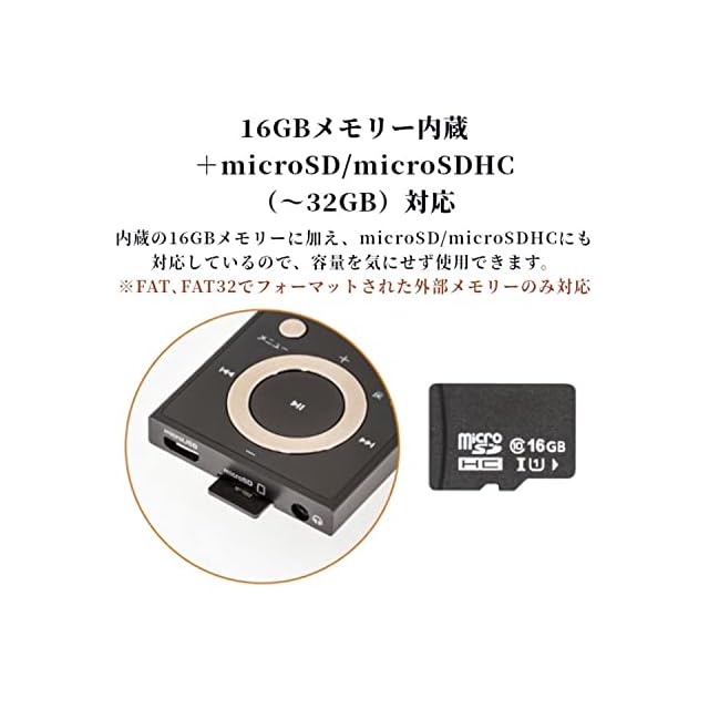 16GBメモリー内蔵+microSD/microSDHC(〜32GB)対応、USB充電で約11時間使用可能(音楽再生時)パソコンからUSB接続で充電、約2時間30分の充電で約11時間の使用が可能です。
