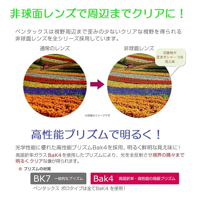 【高級プリズムBak4とは】光をロスすることなく反射させ、視界の隅々まで明るくクリアな像が得られ、色の再現性も高くなります。