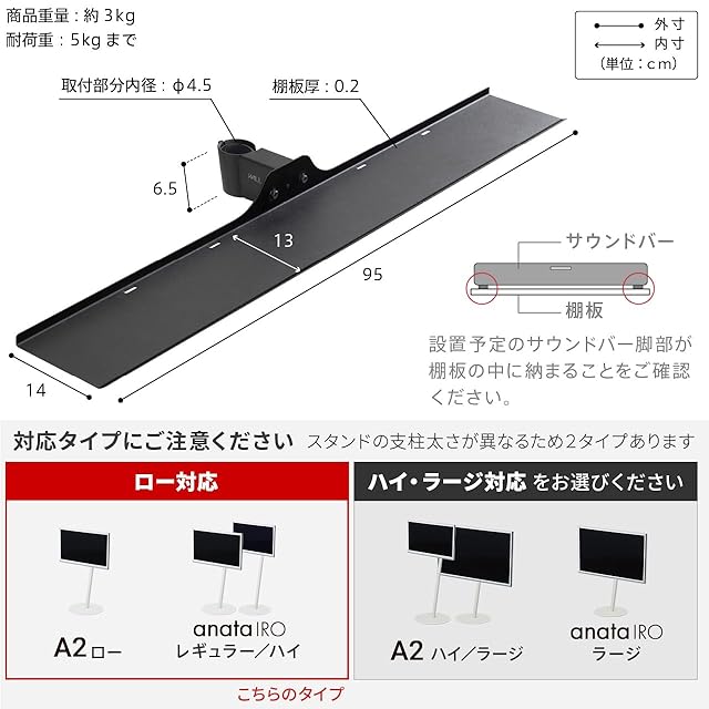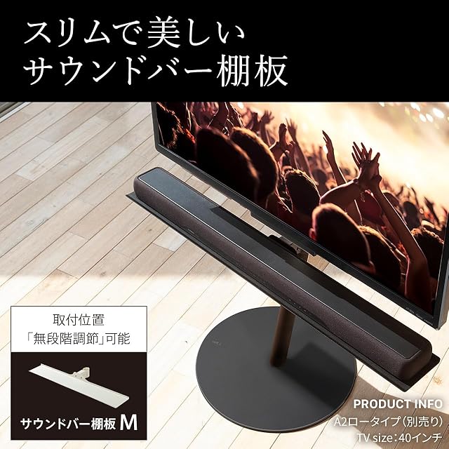 A2のスタイリッシュなデザインをそのままに、音にこだわりたいあなたにおすすめのサウンドバー棚板。取り付け位置が自由に調整可能。