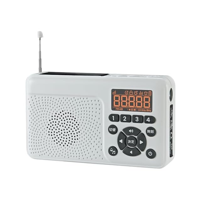 よく聞く放送局を簡単登録:1~4の数字キーを長押しすることで、お気に入りの放送局が番号で保存されます。AM/FM 各4局まで登録できます。 ●LEDライト内蔵:非常灯としても使用可能なLEDライトを内蔵。 停電などの緊急時に対応できます。点灯/点滅モードを切替可能。