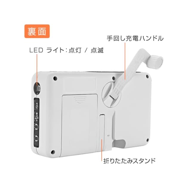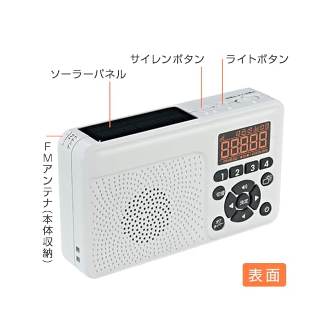 商品名:F.R.C. エフ・アール・シー FIRSTCOM 日本製 防災用ラジオ FC-W118RD (W) 手回し充電・ソーラー充電機能 2000mAhバッテリー内蔵