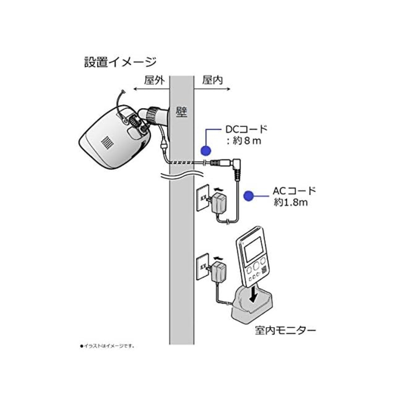 カメラとモニター親機間の配線工事やネット接続など、面倒な設定が不要。電源ONですぐに使える。