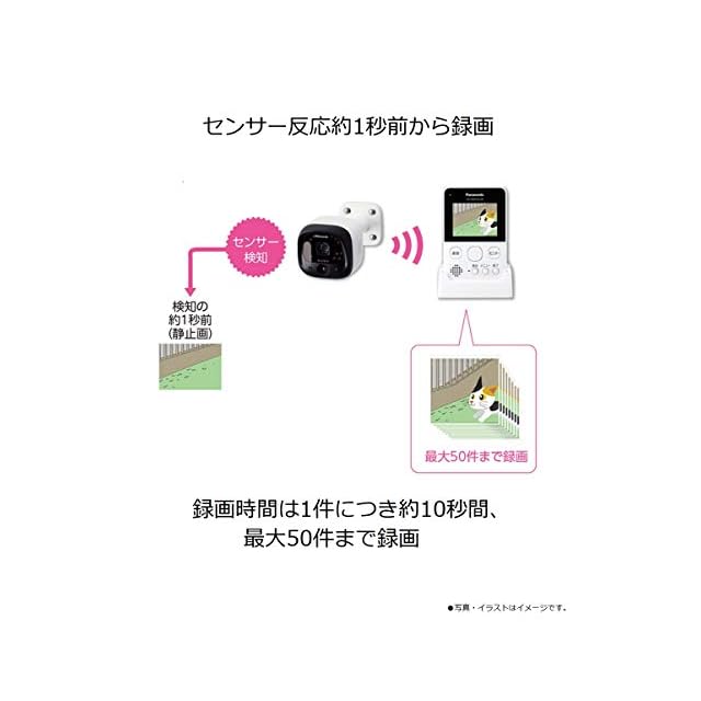 センサーが検知すると、映像を自動で録画(1件約10秒間、最大50件)。センサー反応の約1秒前から録画開始。撮り逃しを防止する「検知前録画」。