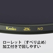 【滑らかな着脱を実現する潤滑加工&ローレット】フィルター取り付け時のレンズへの噛み込みを軽減させる潤滑加工と、フィルター着脱時に指の引っ掛かりを良くする「ローレット加工」で付け外しがいつも快適。