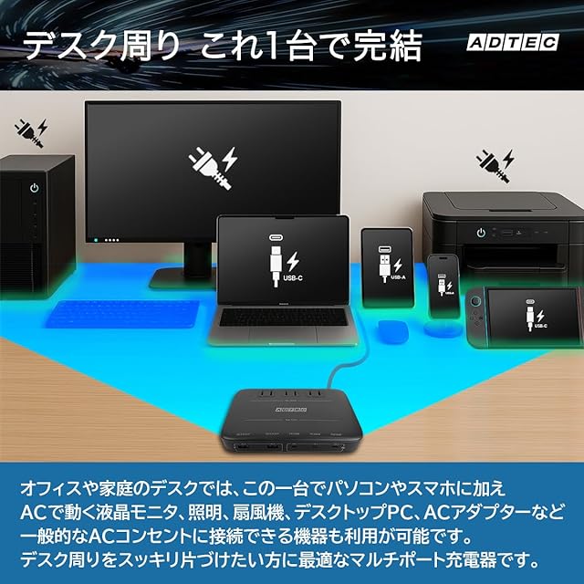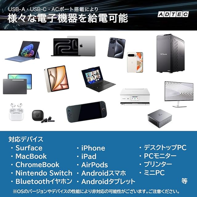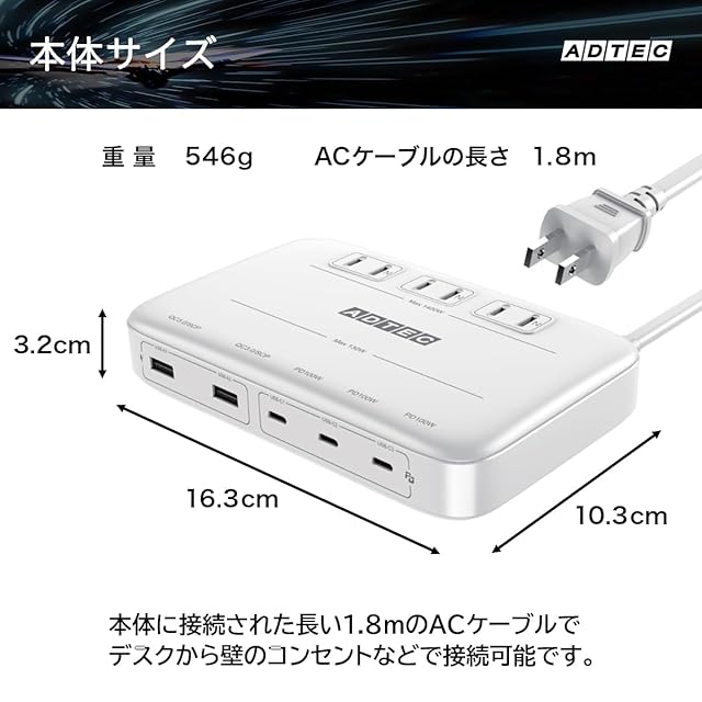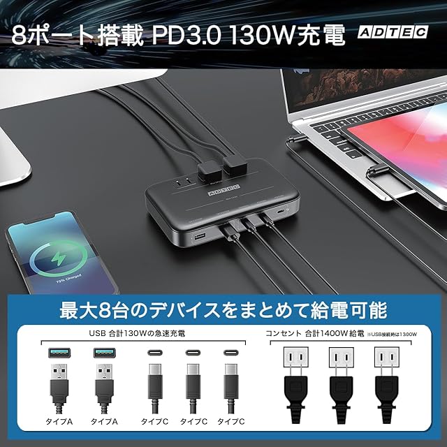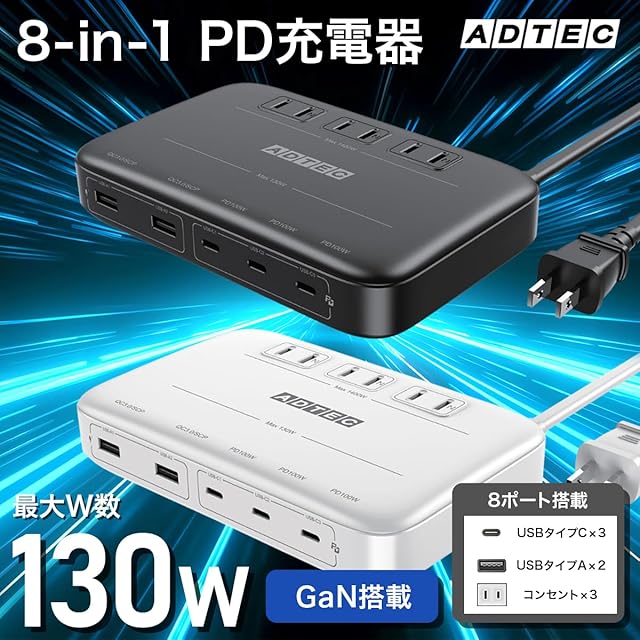 商品名:アドテック マルチポート 充電器 130W PD3.0充電器 5ポート(USB-Cx3+USB-Ax2)(ACx3)GaN (窒化ガリウム) 高速充電 ノートパソコン MacBookPro スマートフォン Android ホワイト APDT-V130A2C3-WH