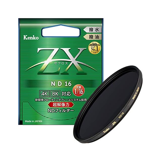 【画質を落とさず光量を1/16(4絞り分)に減少】ZX[ゼクロス] ND16は、レンズに入る光量を1/16(4絞り分)に減少。高い解像力と忠実な色再現性を実現した、Kenko最高画質のNDフィルターです。