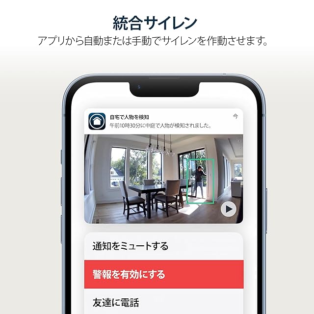 電話通知: セキュリティカメラに動きが検知されると、通知を受け取り、ライブストリーミングビデオを見ることができます。