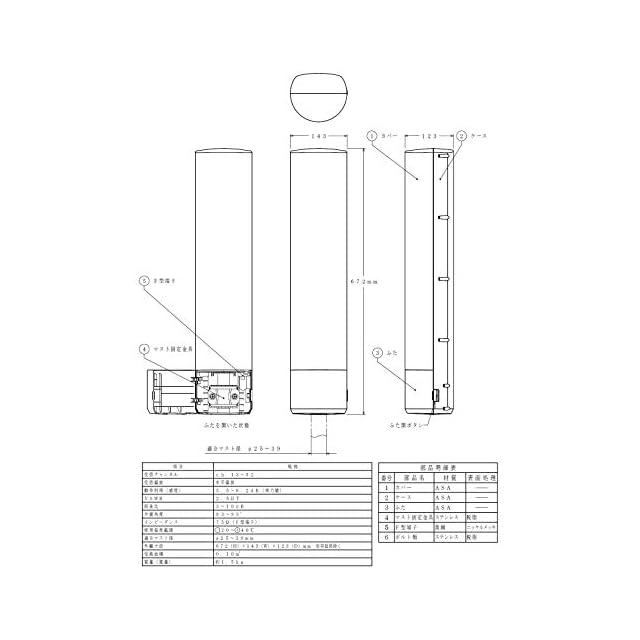アンテナ利得:5.5~6.2dB