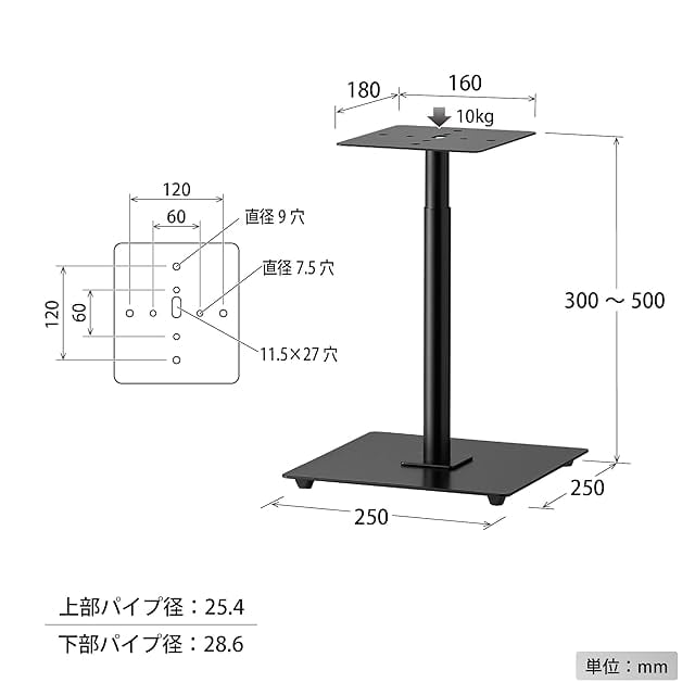 サイズ : 幅25㎝×奥行25㎝×高さ30~50㎝ (天板)幅16㎝×奥行18㎝