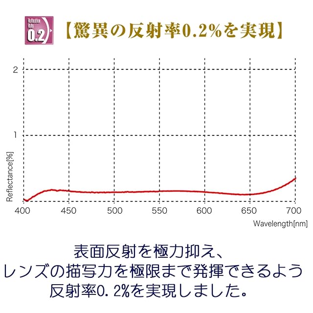 【脅威の反射率0.2%を実現】表面反射を極力に抑え、反射率0.2%を実現しました。