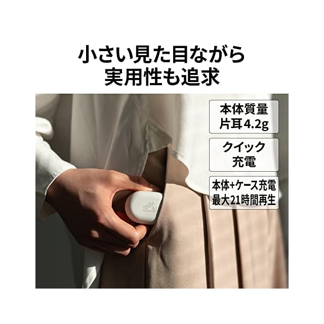 【イヤホンもケースも小さくて、軽い】アクティブノイズキャンセリング(ANC)機能を搭載した当社製完全ワイヤレスイヤホンにおいて最小・最軽量※となる約4.2g(片耳)の質量を実現し、より軽い着け心地でリスニングが楽しめます。また、充電ケースも約28gと小型・軽量のため、外出時の持ち運びなども便利です。※:2022年5月18日現在、当社調べ。