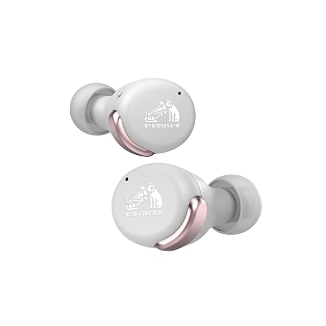 【ファッションに溶け込む完全ワイヤレスイヤホン】メタリックパーツをワンポイントに使ったミニマルなバイカラーデザインを採用。メタリックパーツは屋外使用時などで発生しやすい風切り音を抑制するフードとなり、機能面も考慮したデザインとなっています。イヤホン表面には、ビクターブランドのアイコン「ニッパー犬」のイラストもあしらいました。