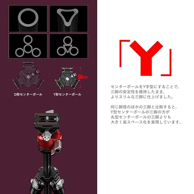 レオフォト LY-224C+LH-25R カーボン三脚 Y字形の独自センターポールを採用したカーボン三脚と、ダブルパンニング機能搭載の自由雲台のセット